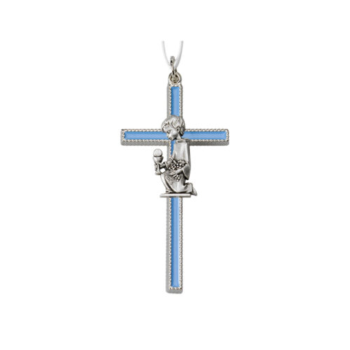 Croce in metallo nichelata/smaltata – placca argento