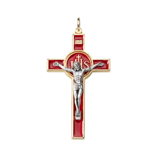 Croce in metallo dorata/smaltata – Cristo in metallo argentato