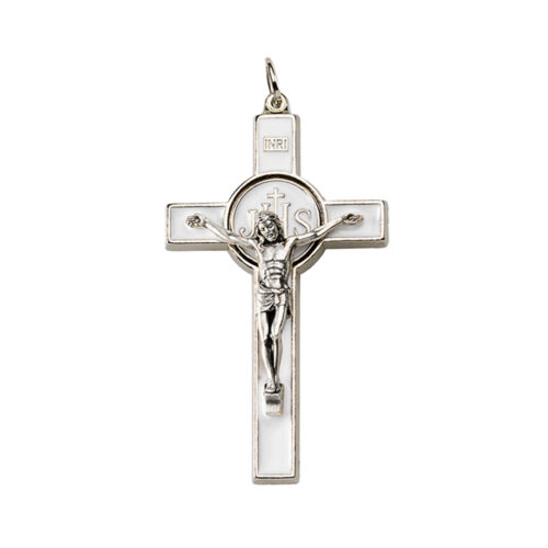 Croce in metallo nichelata/smaltata – Cristo in metallo argentato
