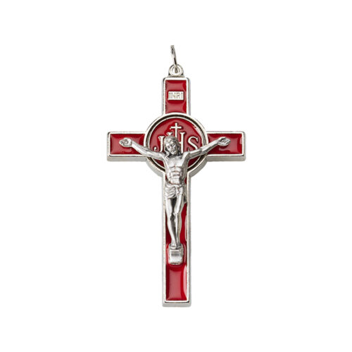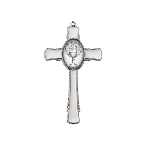 Croce in metallo nichelata/smaltata – placca in metallo argentato