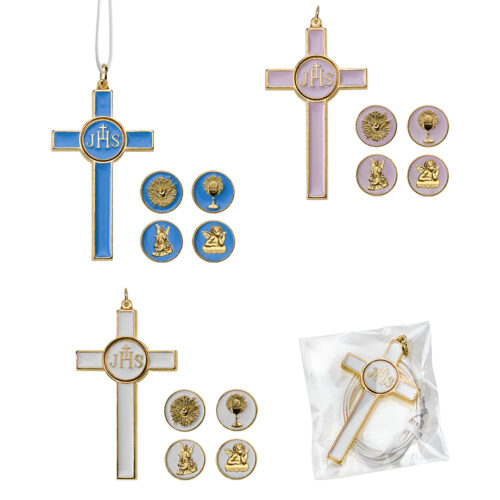 Croce in metallo dorata/smaltata – placca argento