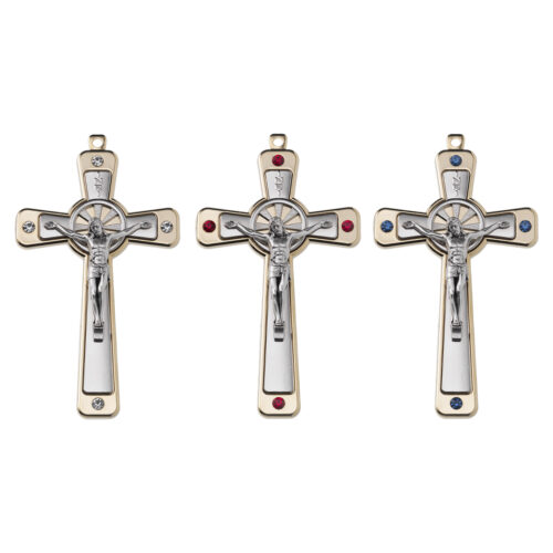 Croce in metallo doppia finitura Dorata/Nichelata con strass Swarovski – h 12,5 cm