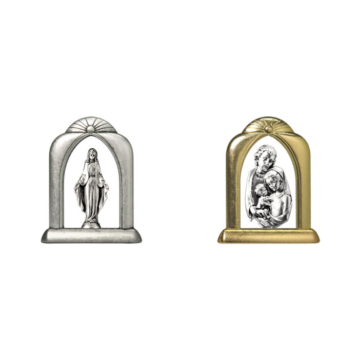 Cornicetta in metallo argentato o dorato con statua in metallo argentato – Serie micro statue h 2,5 cm