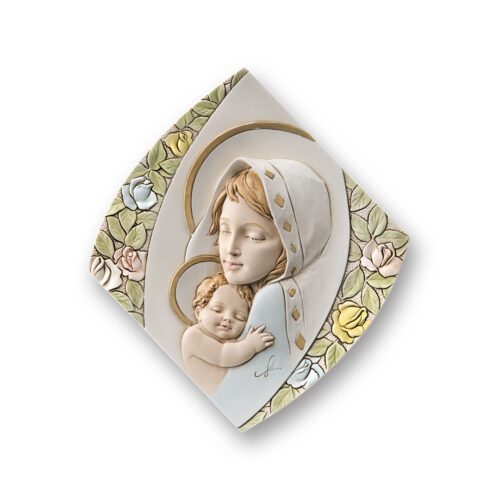 Serie NATIVITÀ – Pannello in legno noce / placca in argento con parti colorate