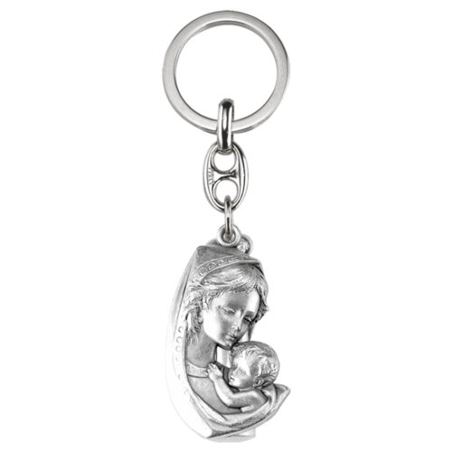 Portachiavi San Cristoforo e Madonna di Lourdes in metallo argentato