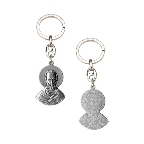 Portachiavi San Nicola di Bari in metallo argentato con scritta