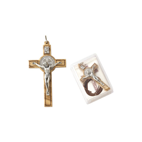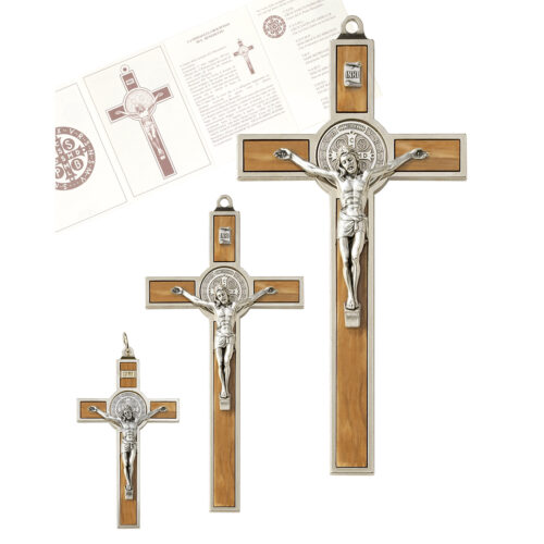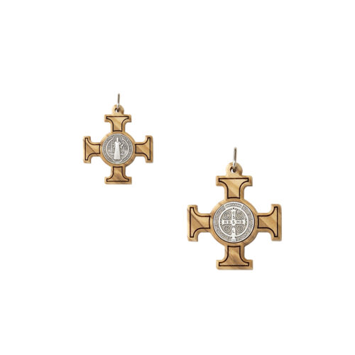 Serie Croce San Benedetto nichelata/inserti in legno ulivo
