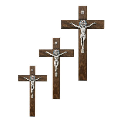 Serie Croce San Benedetto in legno noce/medaglie argentate