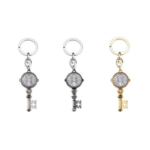 Portachiavi Chiave San Benedetto in metallo nichelato, argentato o dorato con medaglie argentate