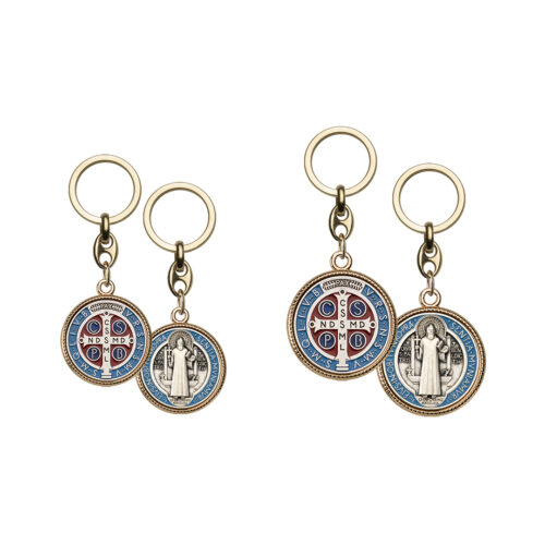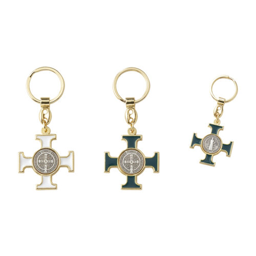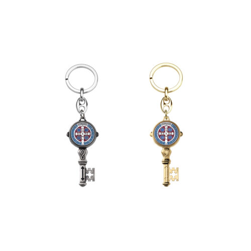 Portachiavi Chiave San Benedetto in metallo argentato o dorato con medaglie argentate/smaltate