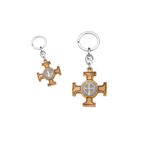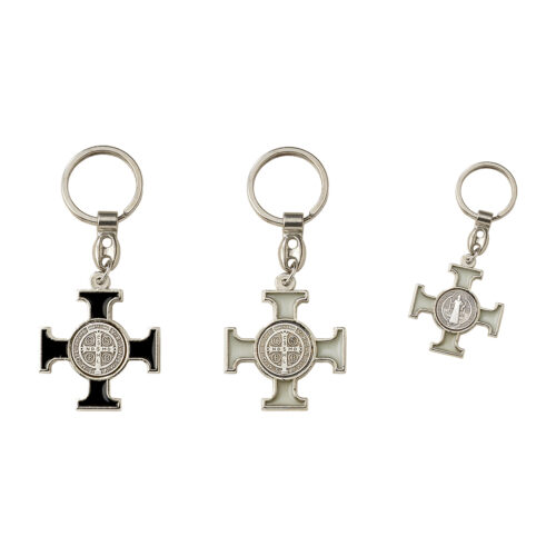 Portachiavi Croce San Benedetto in metallo nichelato o argentato