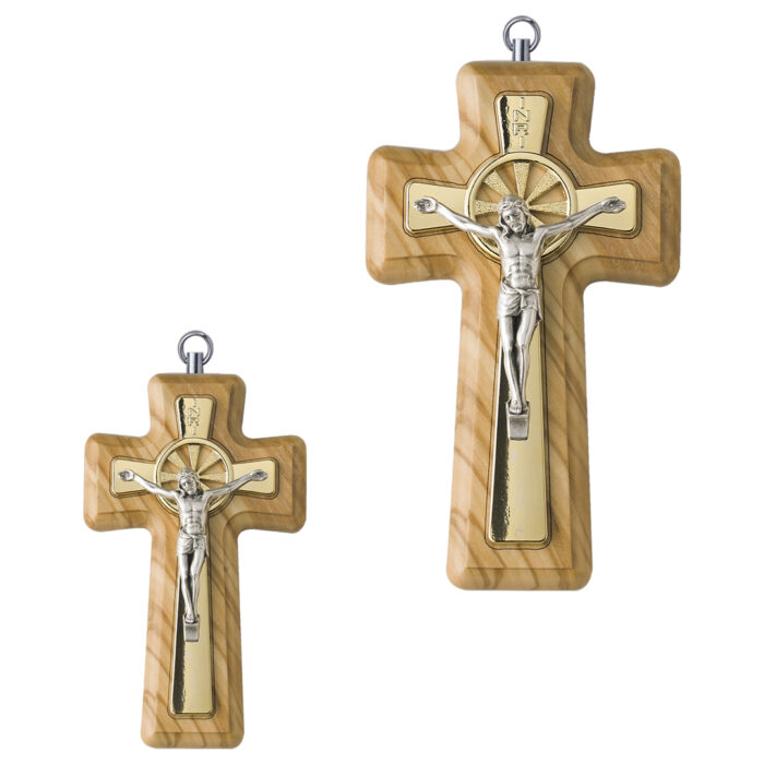 Croce in legno ulivo con Croce in metallo dorato e Cristo argentato