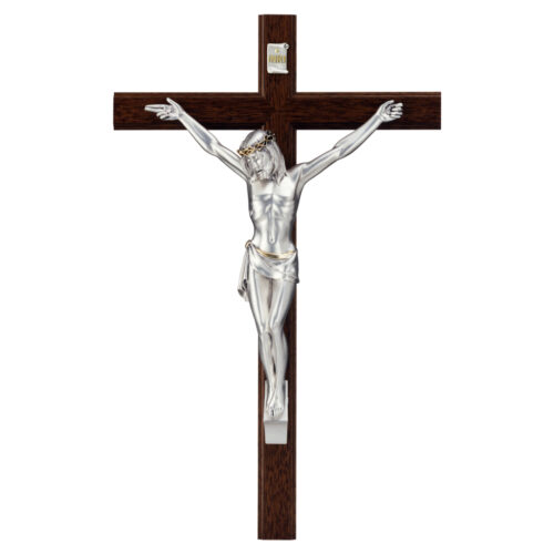 Croce in metallo nichelato o dorato con placca in metallo argentato – Serie placche ovali 2×3 cm Zama