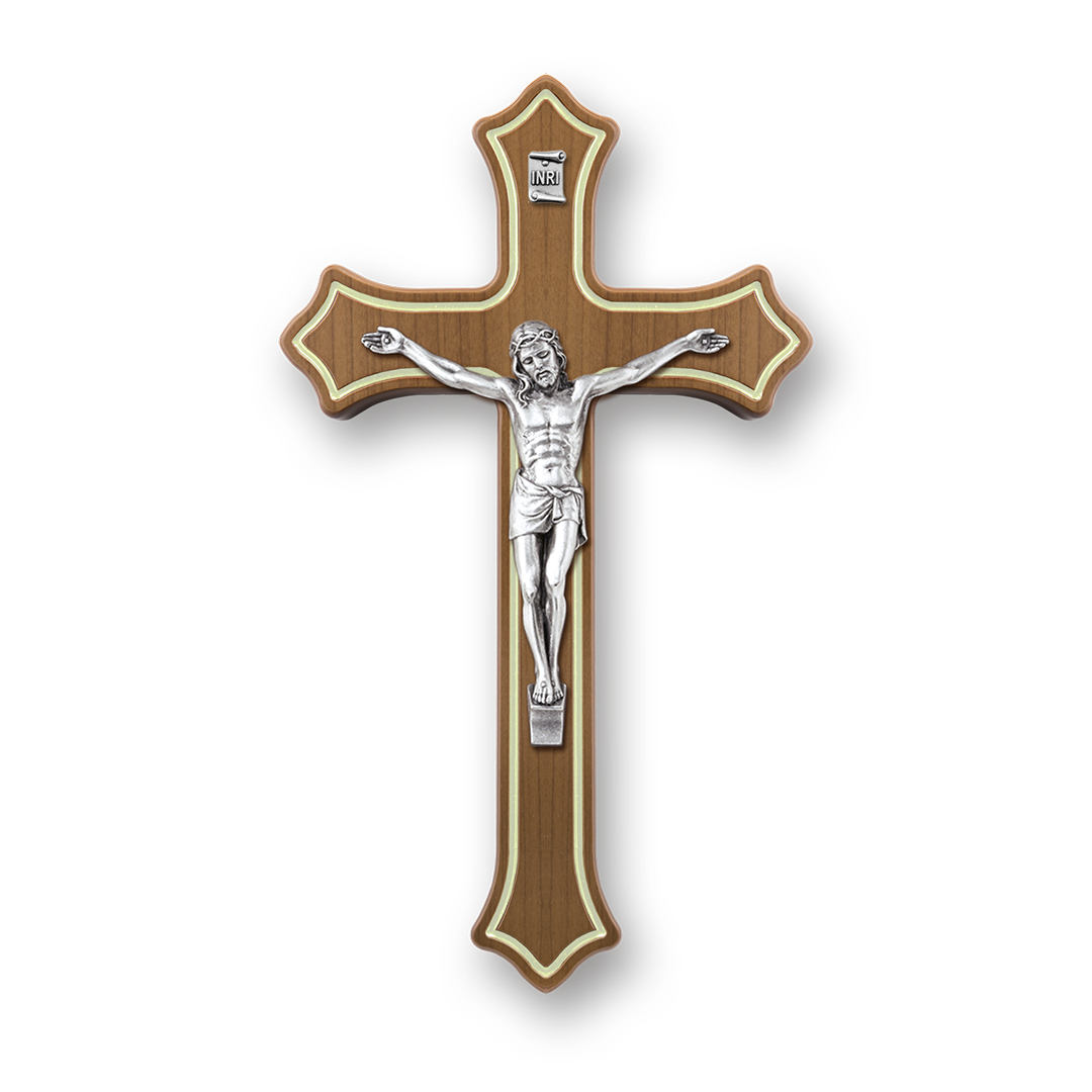 Croce legno noce smaltata con Cristo argentato