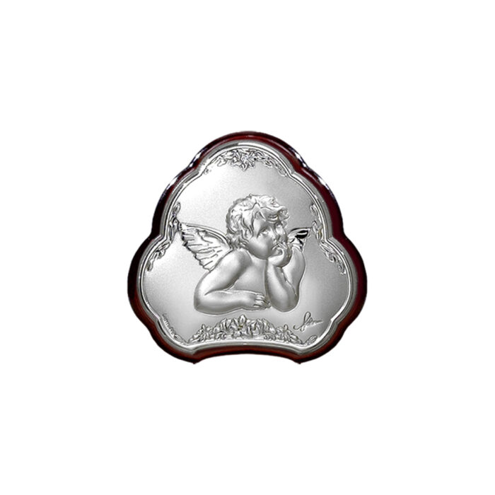 Pannello legno noce con placca in argento – Serie placche ventaglio SL 5×5 cm