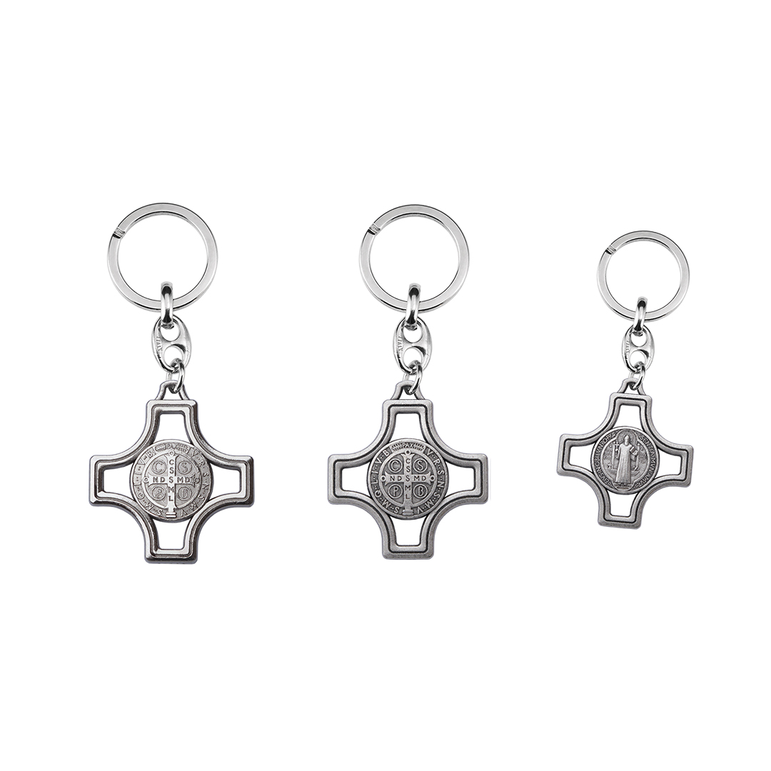 Portachiavi Croce San Benedetto in metallo nichelato o argentato