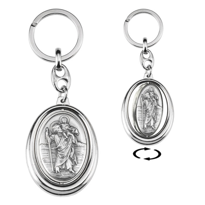 Portachiavi girevole in metallo nichelato con placca in metallo argentato – Serie placche ovali 2×3 cm Zama