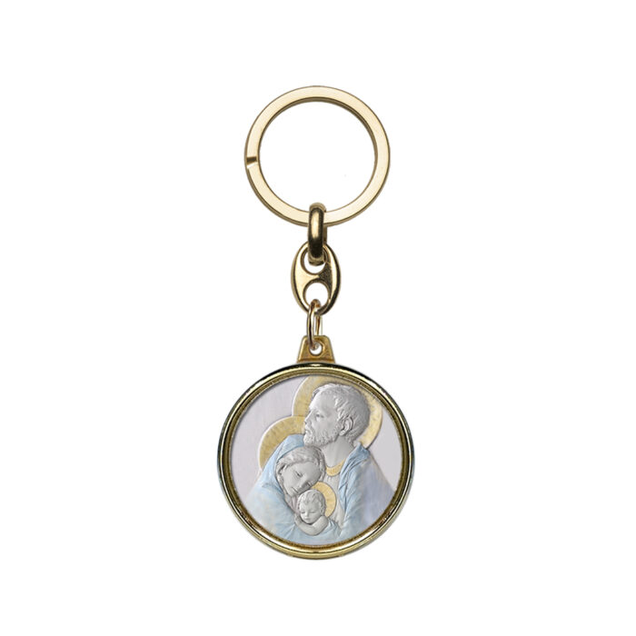 Portachiavi in metallo dorato con placca in argento – Serie placche Ø 3 cm