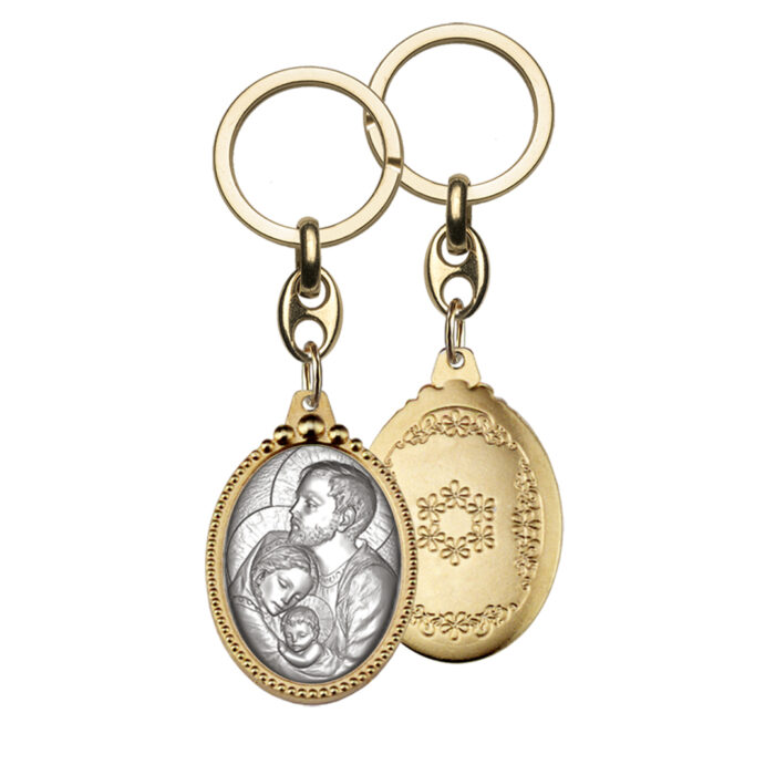Portachiavi in metallo dorato con placca in metallo argentato – Serie placche ovali 2×3 cm Zama