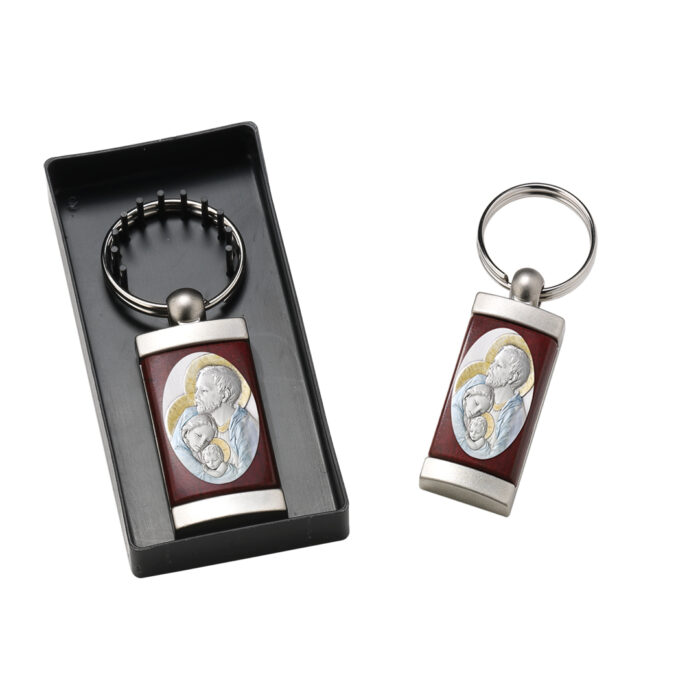 Portachiavi in metallo nichel perla/inserto effetto legno – placca argento