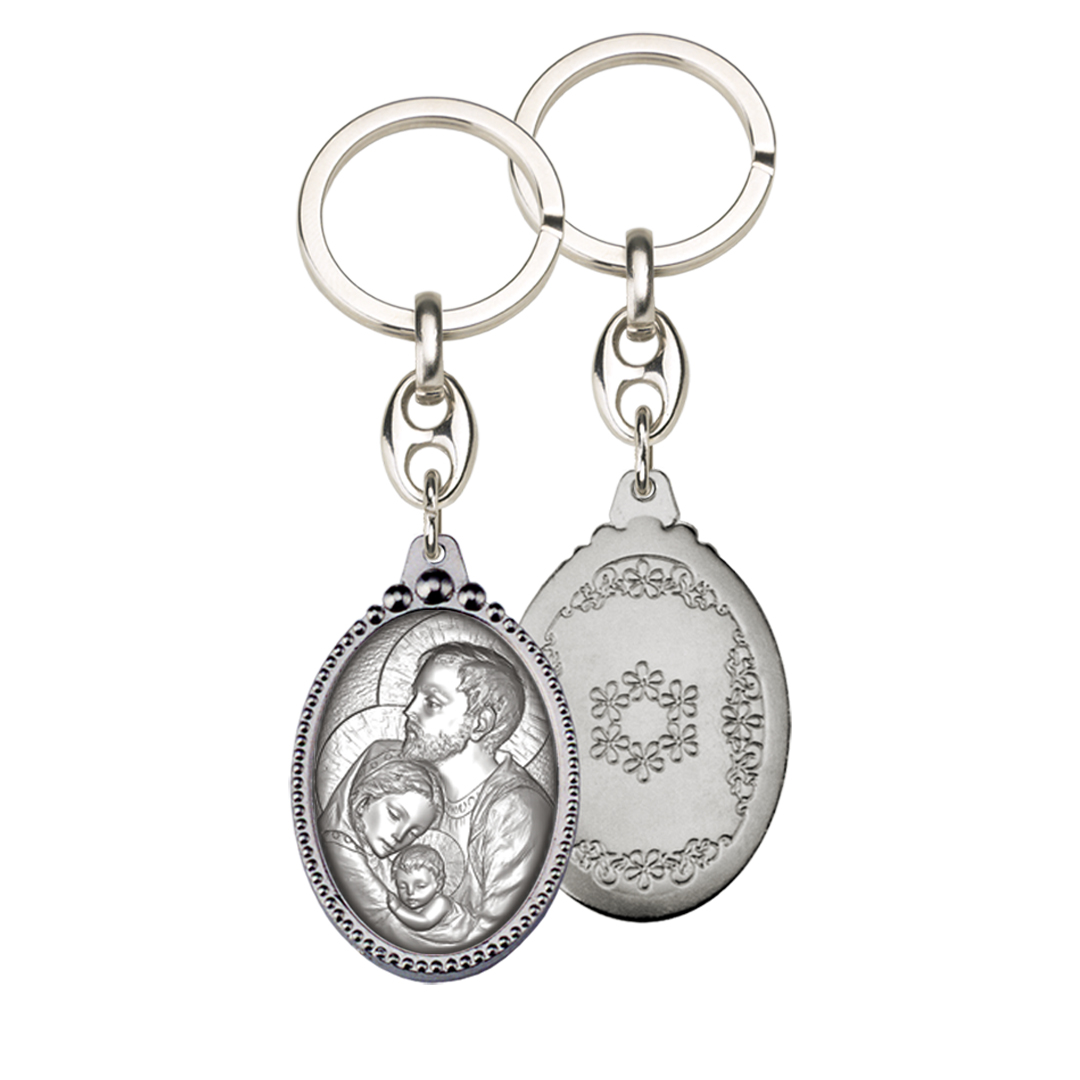 Portachiavi San Cristoforo e Madonna di Fatima in metallo argentato