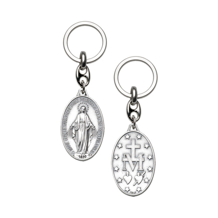 Portachiavi in metallo argentato – Medaglia Miracolosa