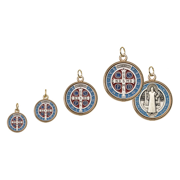 Serie Medaglie San Benedetto in metallo argentato/smaltato con ghiera dorata