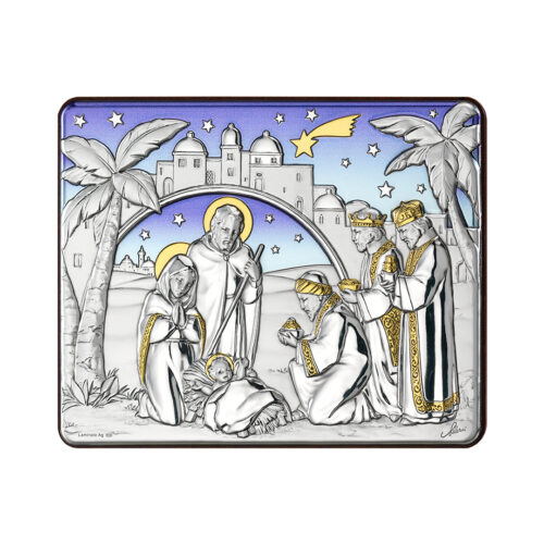 Serie ULTIMA CENA – Pannello in legno noce / placca argento con parti in oro