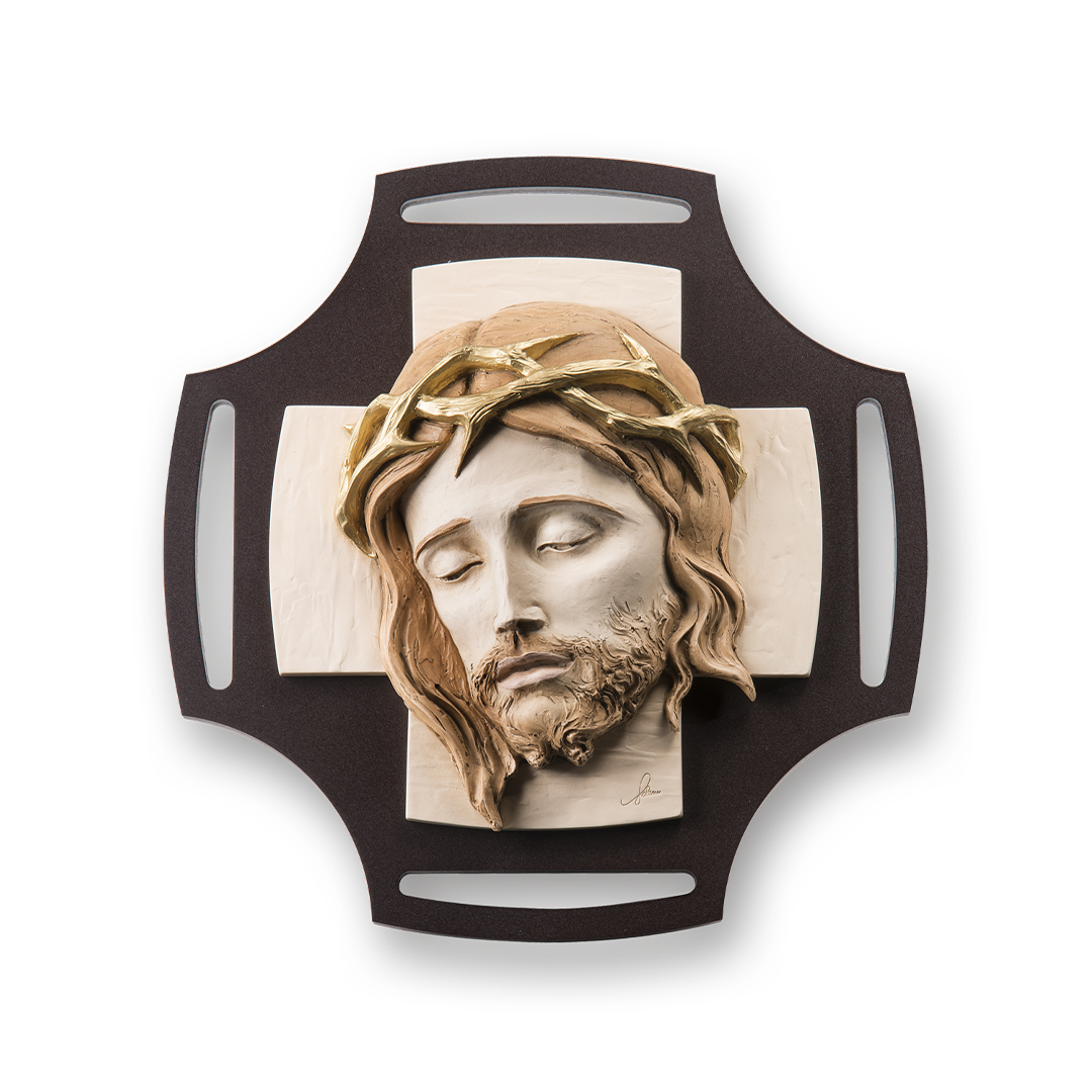 Volto di Cristo in resina colorata – Colore e decori sono realizzati a mano