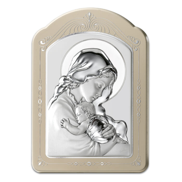 Pannello in legno laccato sabbia con decori argentati da appendere e/o appoggiare – Placca in argento